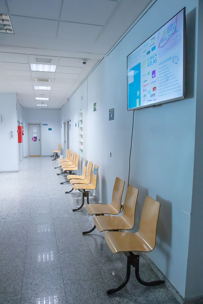 Un moderno y eficiente sistema de gestión de salas de espera informa a los pacientes de la consulta a la que acudir una vez realizada la admisión en nuestras zonas de recepción.