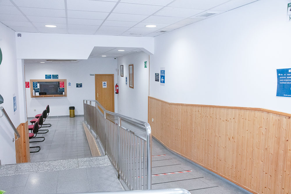 Acceso a sede de diagnóstico por imagen. Sala de espera y recepción al fondo